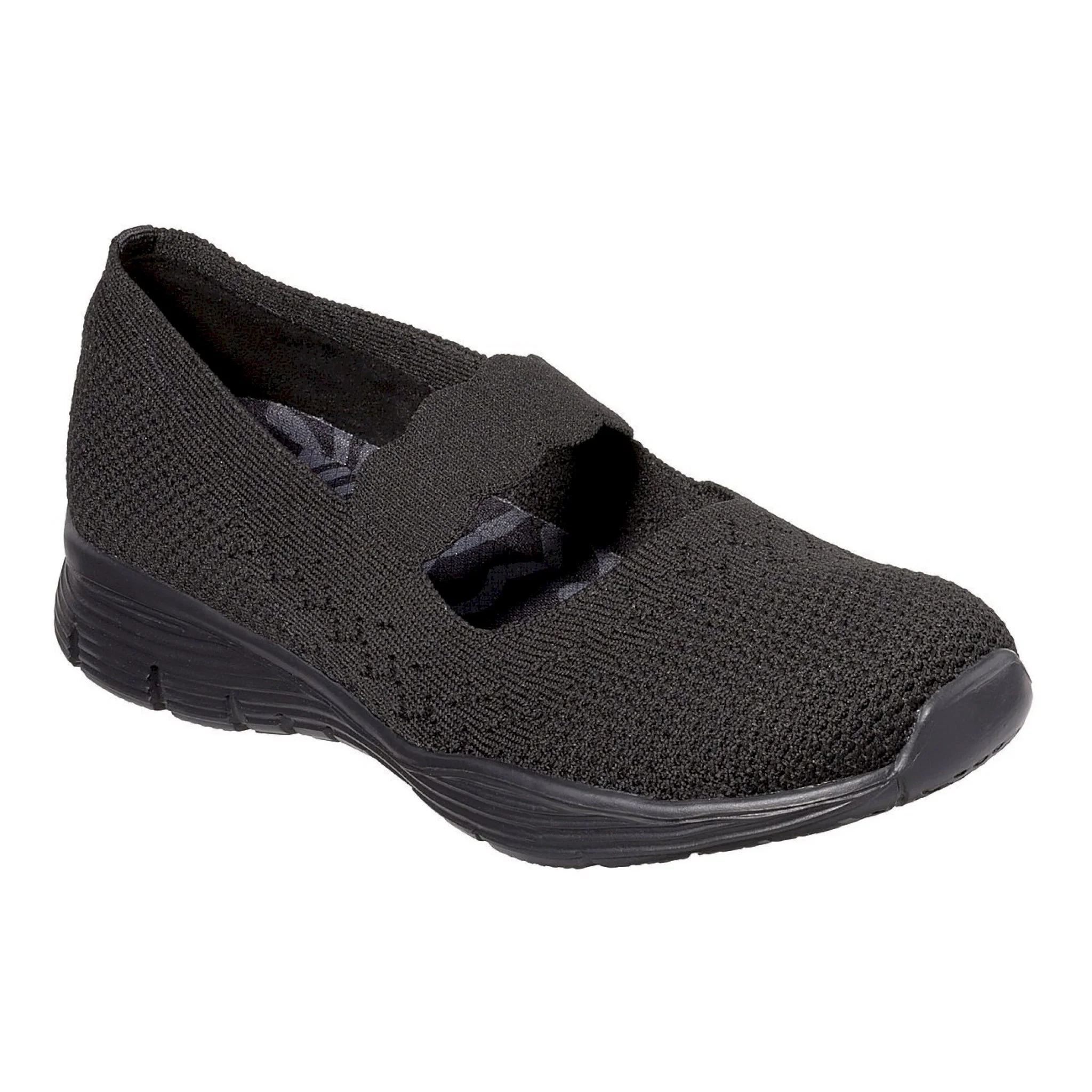 Ottieni un comfort serio e uno stile versatile e casual con la scarpa skechers seager – power hitter. tomaia in morbido tessuto a maglia a maglia piatta in un comodo slip casual su mary jane con dettagli a motivo intrecciato e soletta in memory foam raffreddata ad aria.