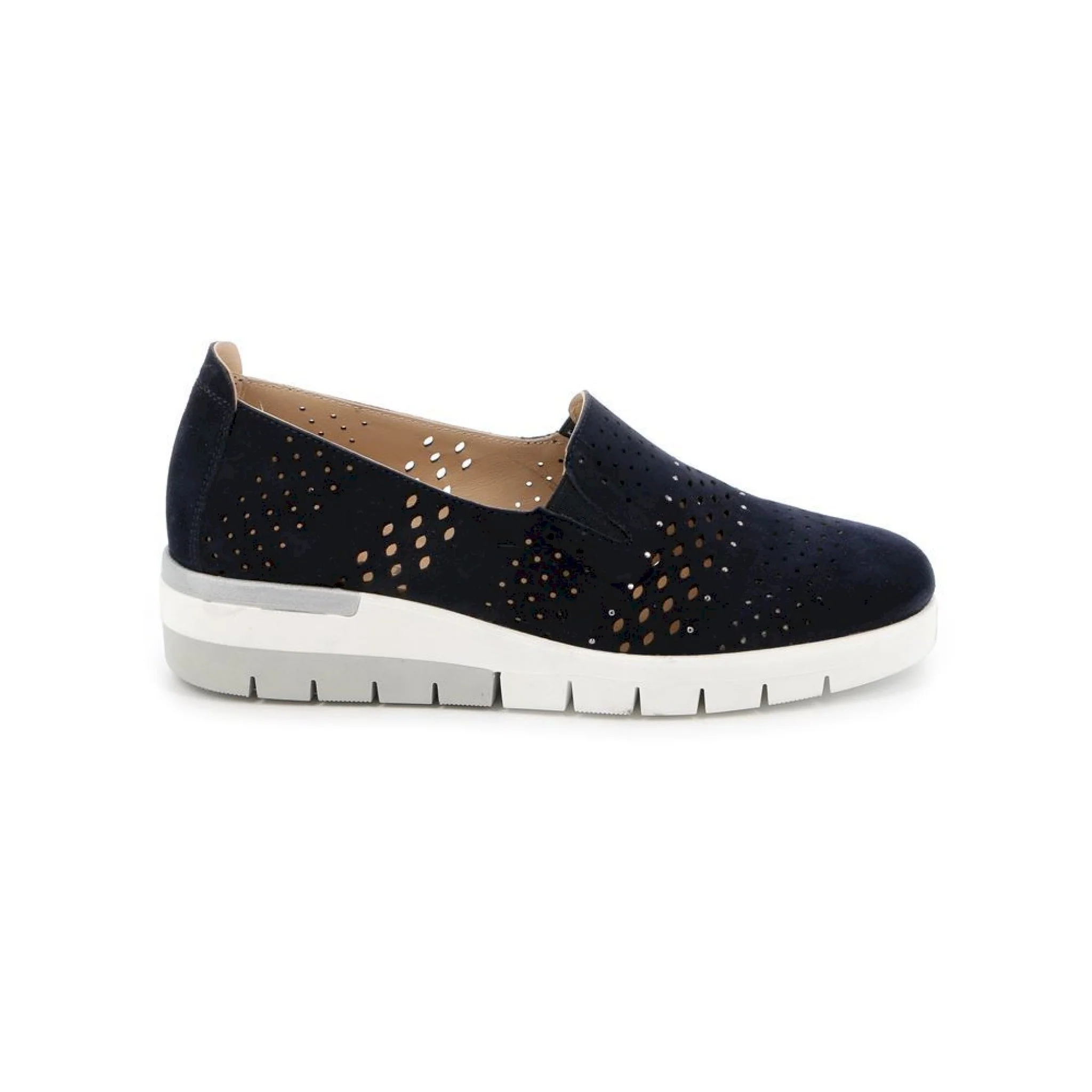 La praticità del modello slip on si combina con l’eleganza di una scarpa col tacco. la zeppa regala slancio alla figura femminile e la tomaia in pelle metallizzata la rende luminosa. la particolare lavorazione a forature passanti mantiene il piede fresco evitando così di affaticarlo, ideali per tutto il giorno!