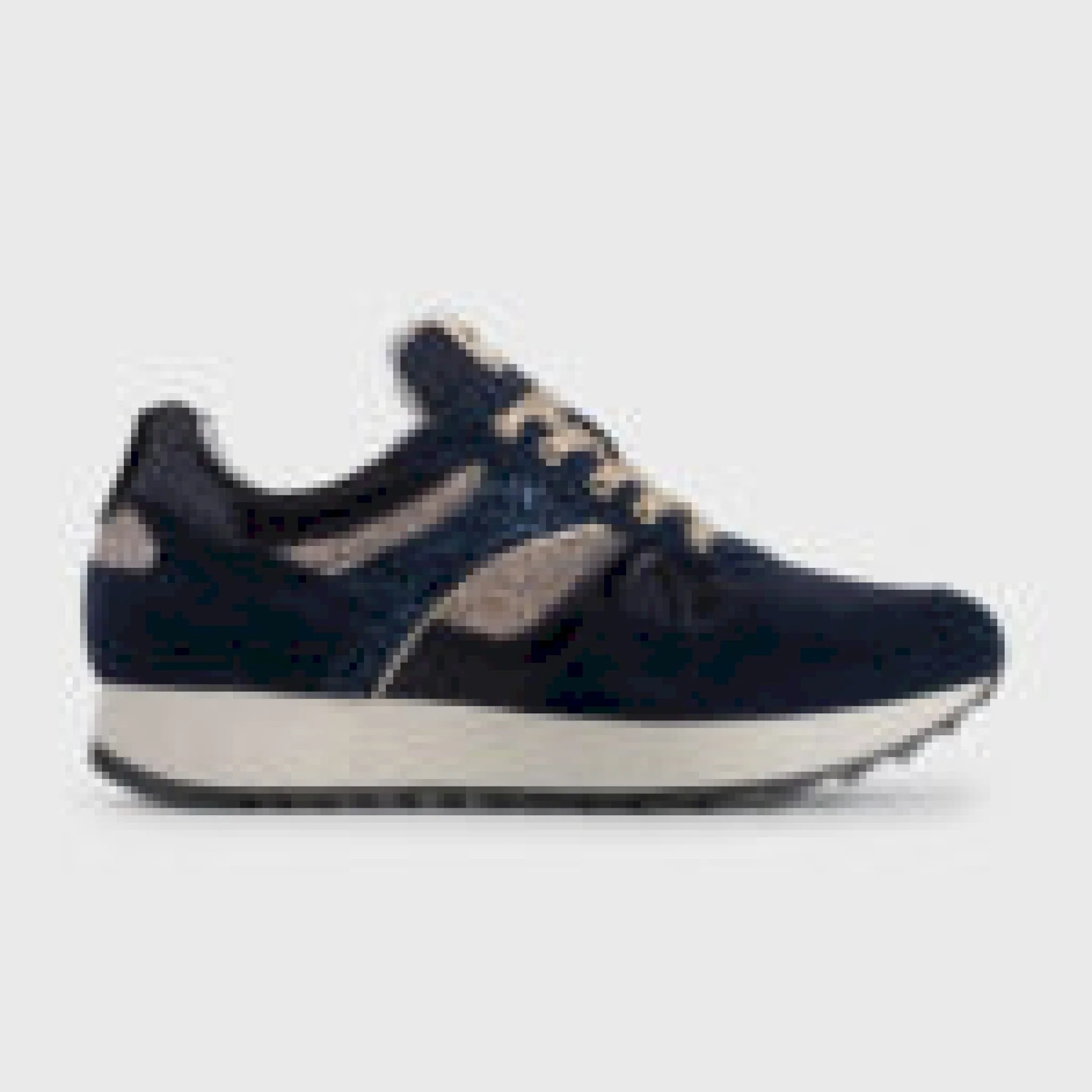 Sneaker in camoscio con inserti in tessuto tecnico glitterato e vernice