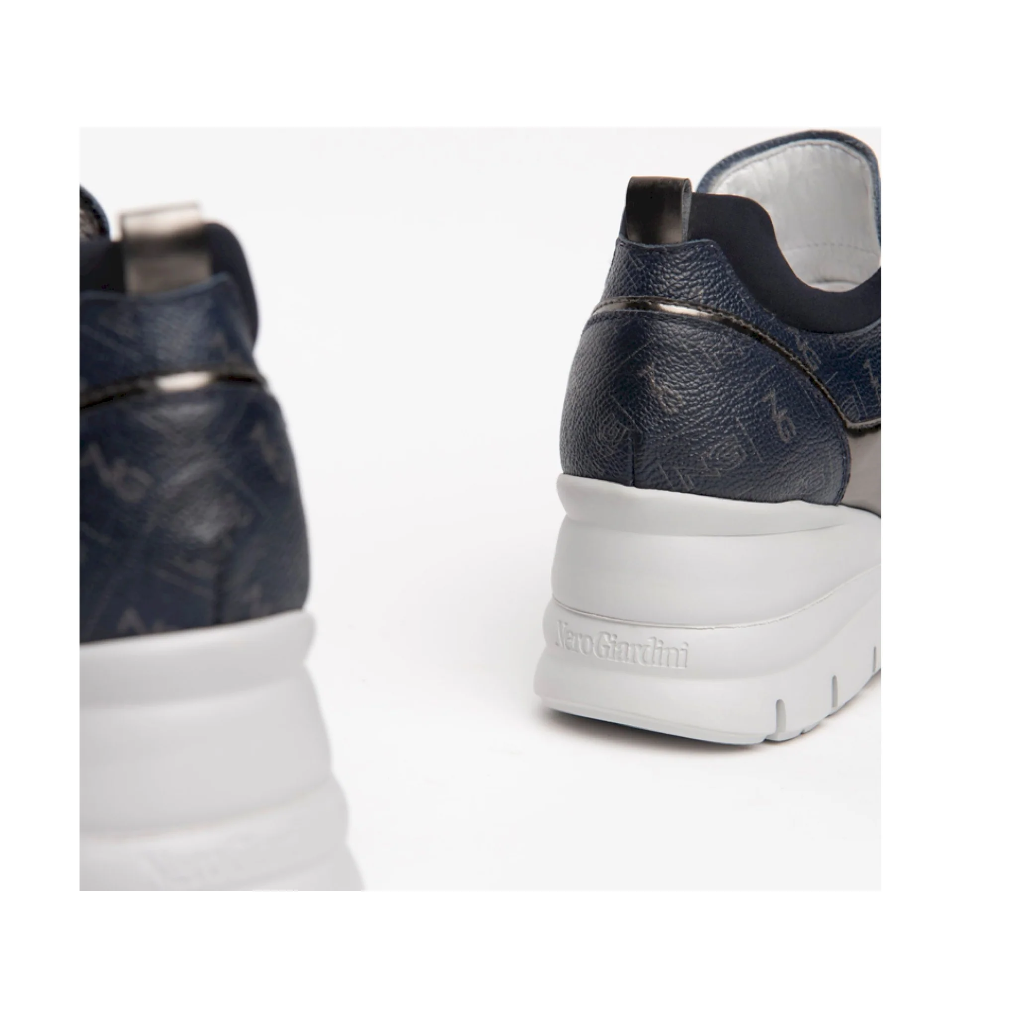 Sneaker in pelle con inserti in pelle stampa monogram e tela laminata.
