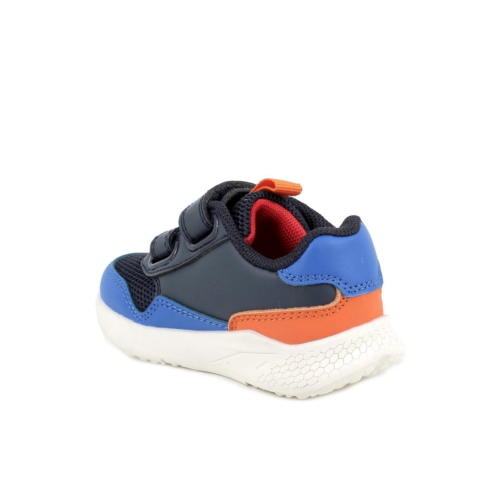 Realizzate in tessuto resistente con rinforzi in punti strategici, queste sneakers primi passi offrono una chiusura a doppio velcro e una suola flessibile che promuove un movimento naturale del piede. hanno una colorata personalizzazione laterale che cattura gli sguardi dei bimbi. il sottopiede è in pelle per una maggiore traspirazione.