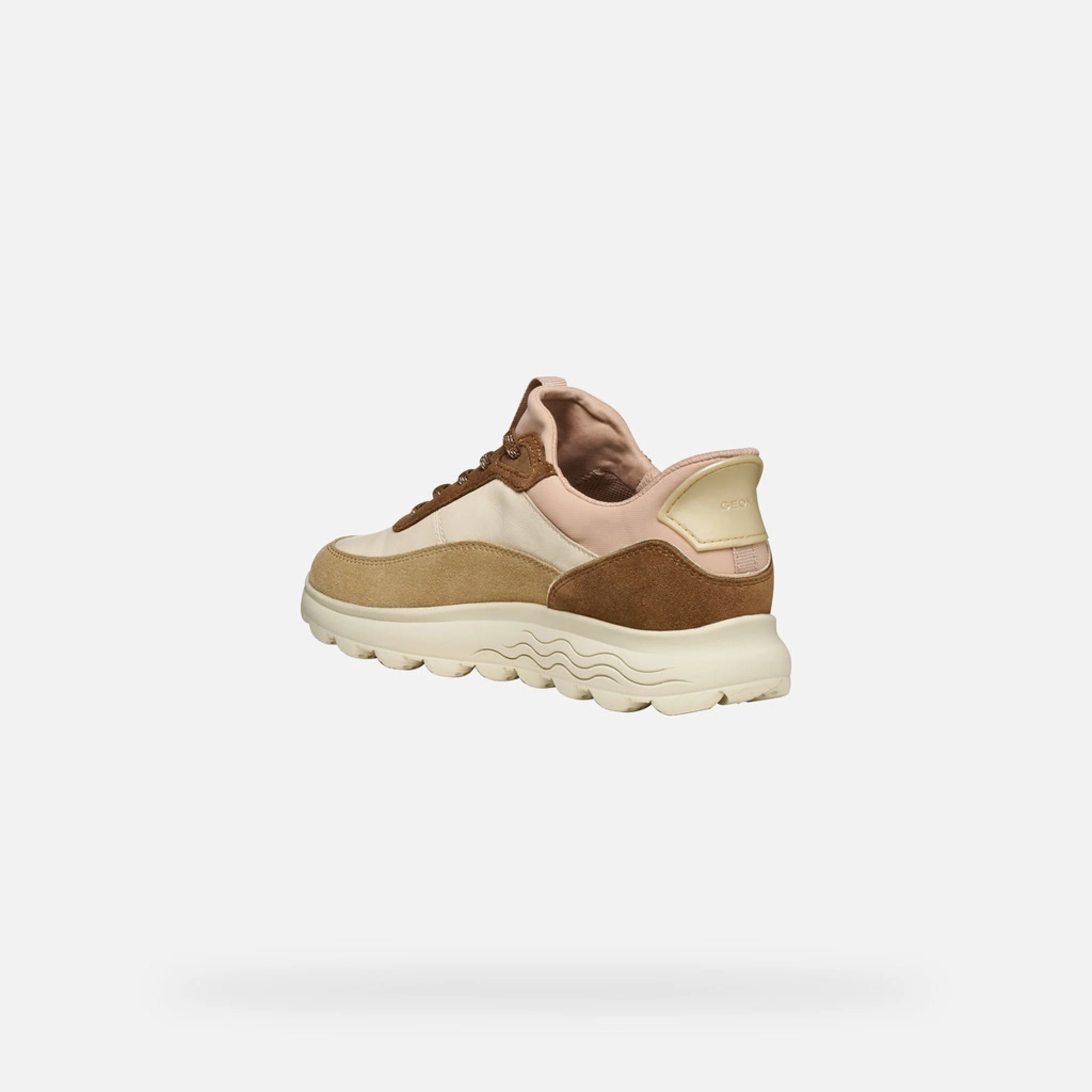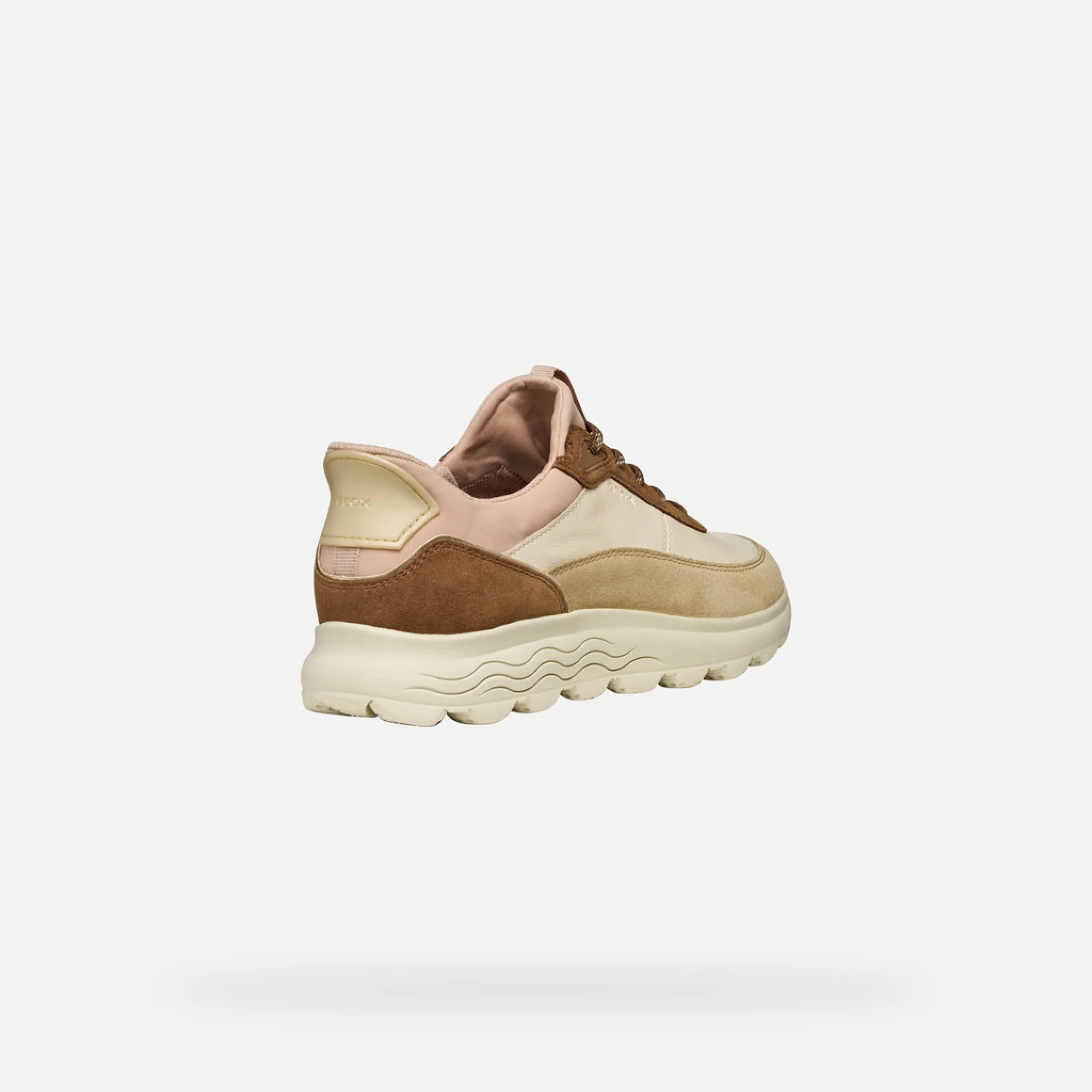 Sneaker donna dal design contemporaneo con sistema che permette un indosso veloce senza l’uso delle mani, garantendo elevato comfort durante la camminata. in questa versione beige e marrone, è realizzata in morbida nappa impreziosita da dettagli in scamosciato per un look sofisticato e versatile. spherica™ plus offre un’ammortizzazione ottimale che regala una spinta in più ad ogni passo, perfetta per un lifestyle urbano e dinamico.