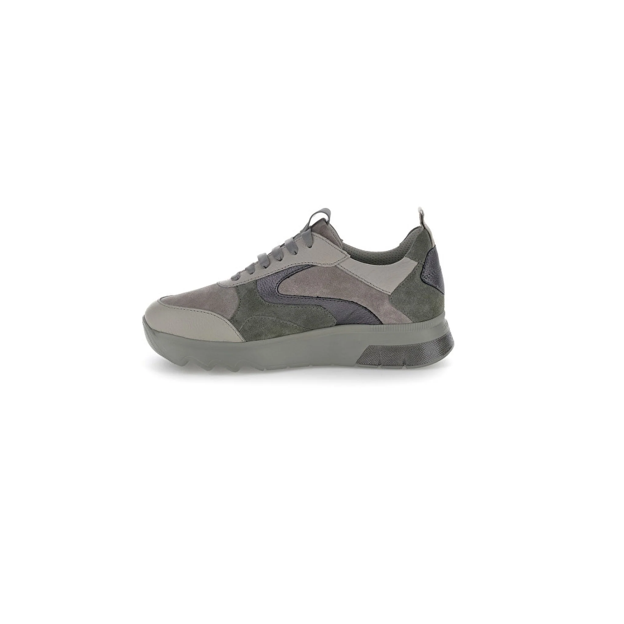 Sneaker casual da donna in pelle spazzolata grigia con vestibilità regular. la sneaker spock, caratterizzata da un comfort eccezionale e una morbidezza ineguagliabile, presenta un look moderno e sofisticato. la tomaia combina diverse nuances ton sur ton, per un’estetica armoniosa e di classe. questo design ricercato ma casual rende la sneaker ideale per chi cerca uno stile raffinato senza voler rinunciare alla comodità. perfetta per aggiungere un tocco di eleganza ai tuoi outfit quotidiani. la calzatura con blusoft memory® ha un particolare plantare estraibile dotato di un inserto in memory foam nell’area del tallone che ammortizza gli urti della camminata. il plantare è costruito con uno speciale materiale con struttura a cellule aperte che assicura un’altissima traspirabilità. suola in eva, altezza tacco (cm): 4.