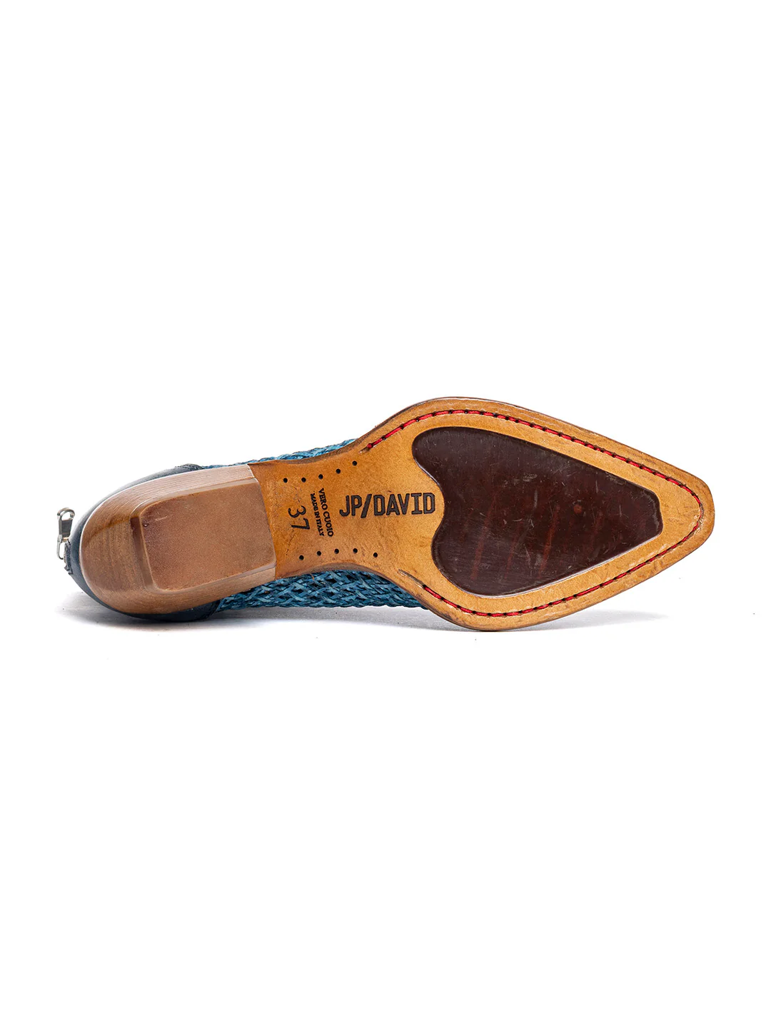 Tipo di lavorazione: pellame tinto a mano e slavato. La suola viene lavata e fissata alla tomaia tramite la cucitura «Blake»