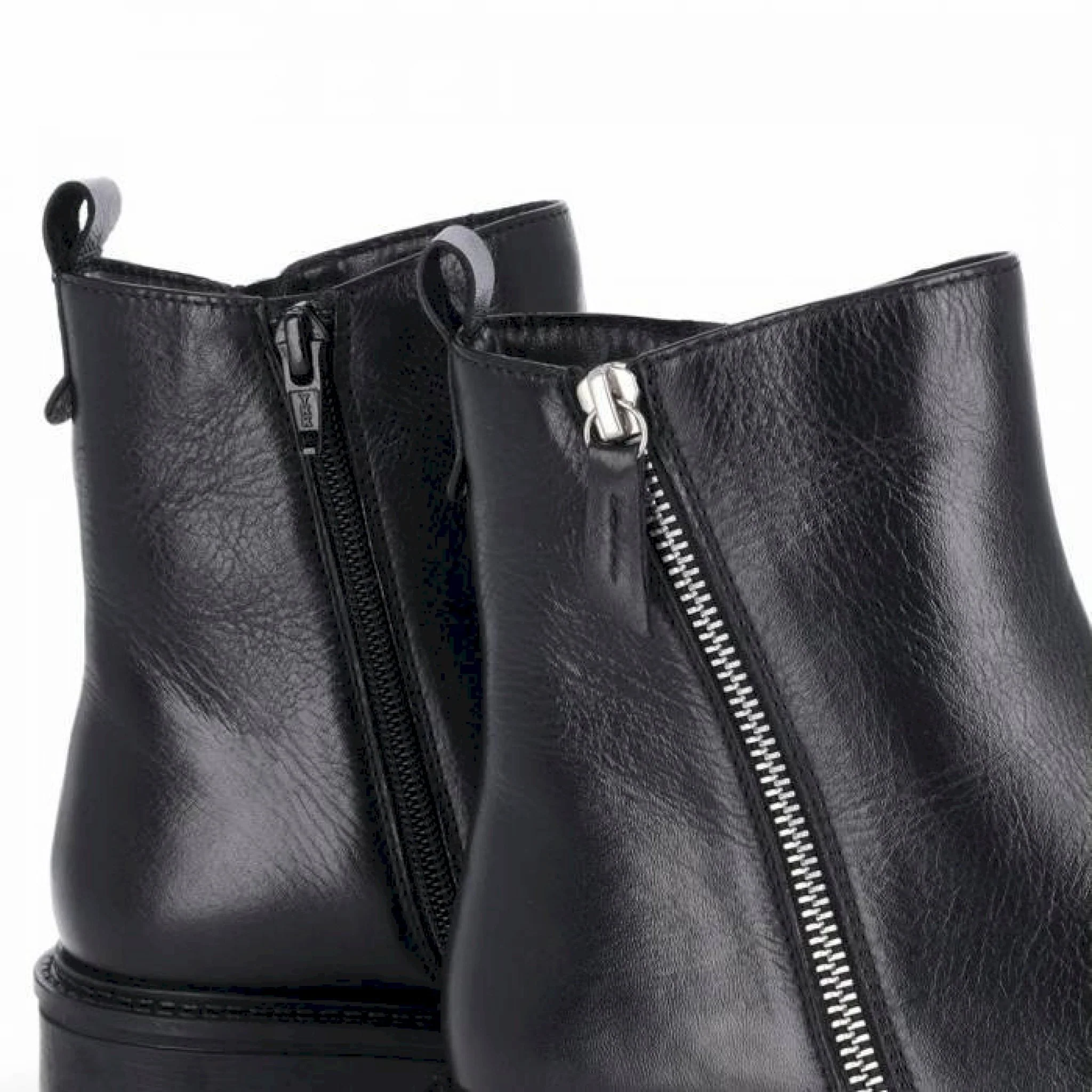 Stivaletto in pelle nera con doppia cernierara e staffetta pull up. altezza gambale-fondo: 14 cm