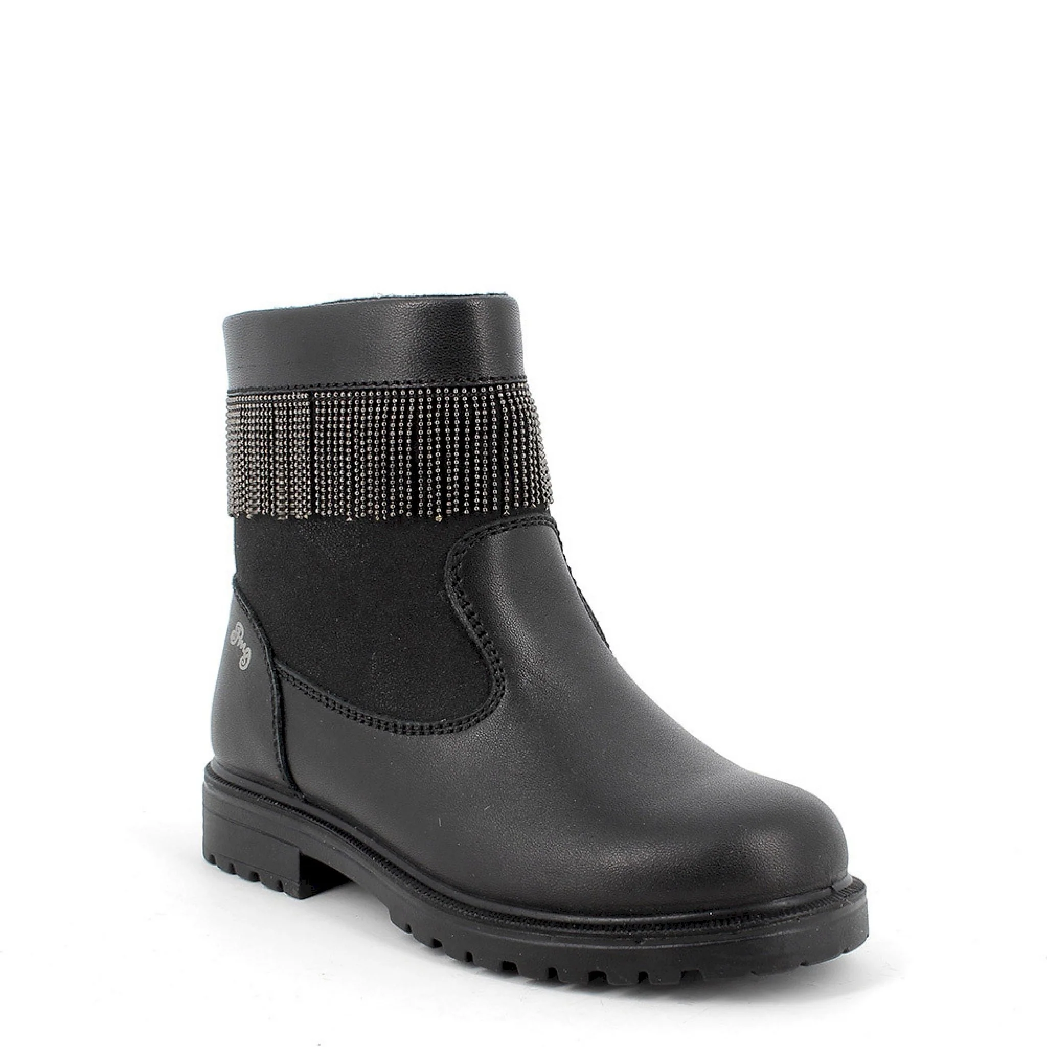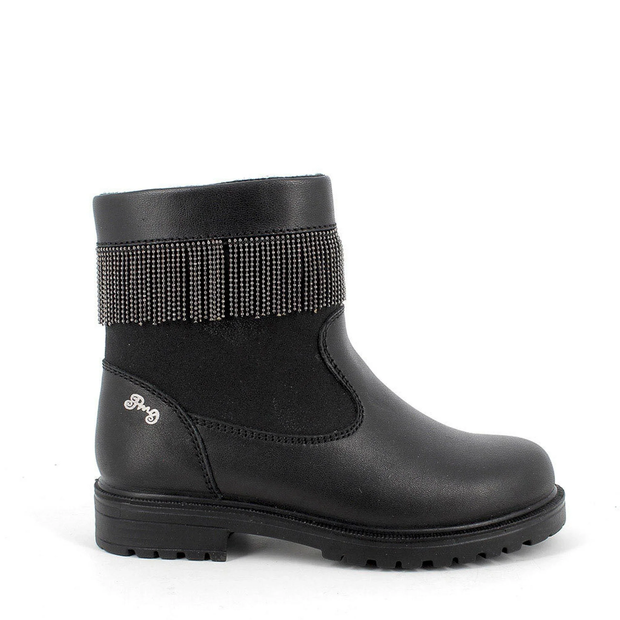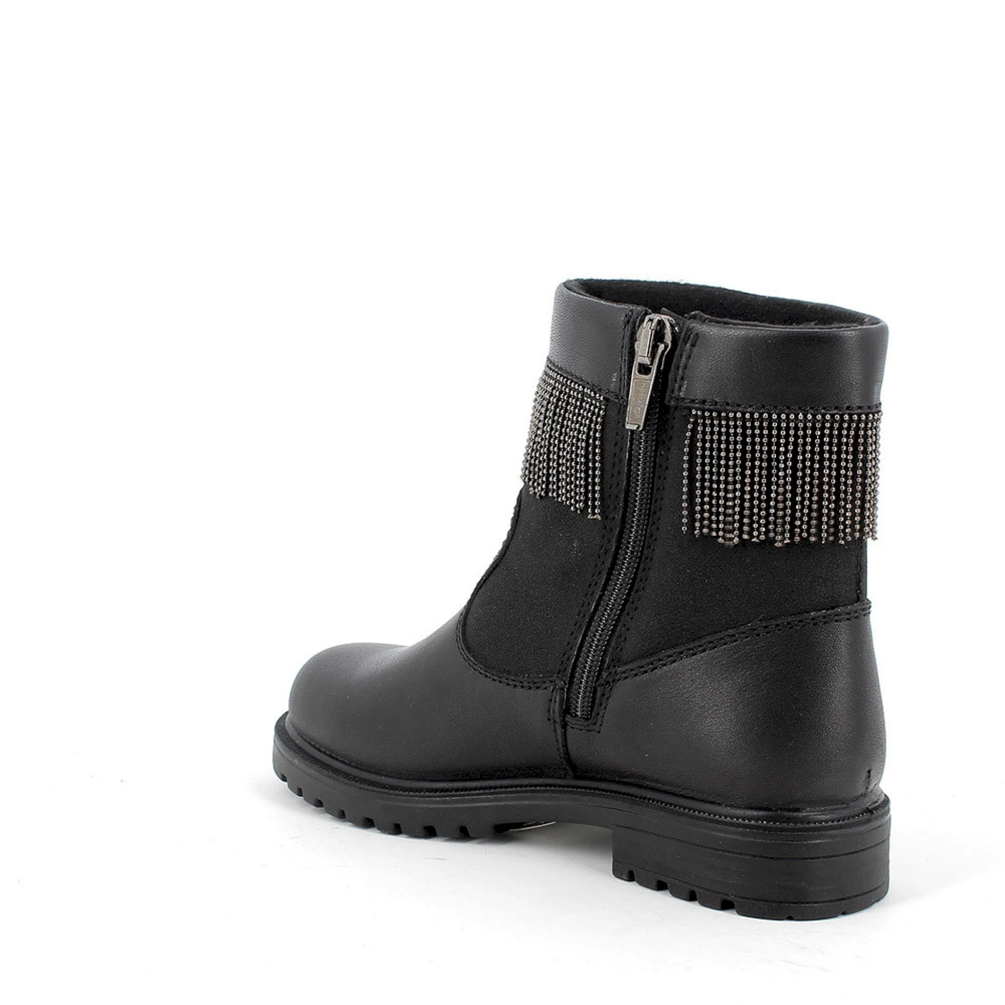 Stivaletto in pelle nera con frange
