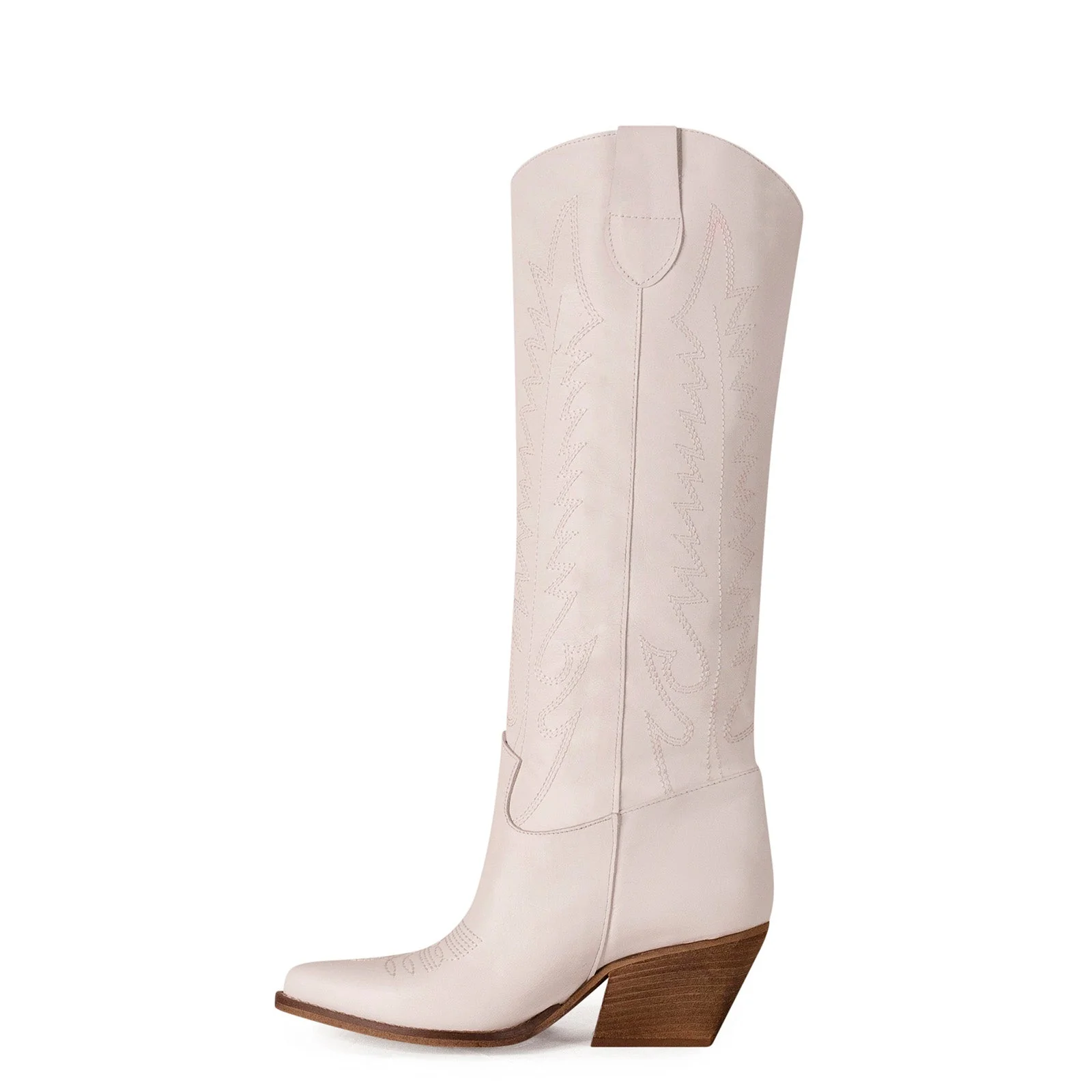 Stivali texani in vera pelle di vitello, realizzati a mano in Italia con lavorazione in ricamo.