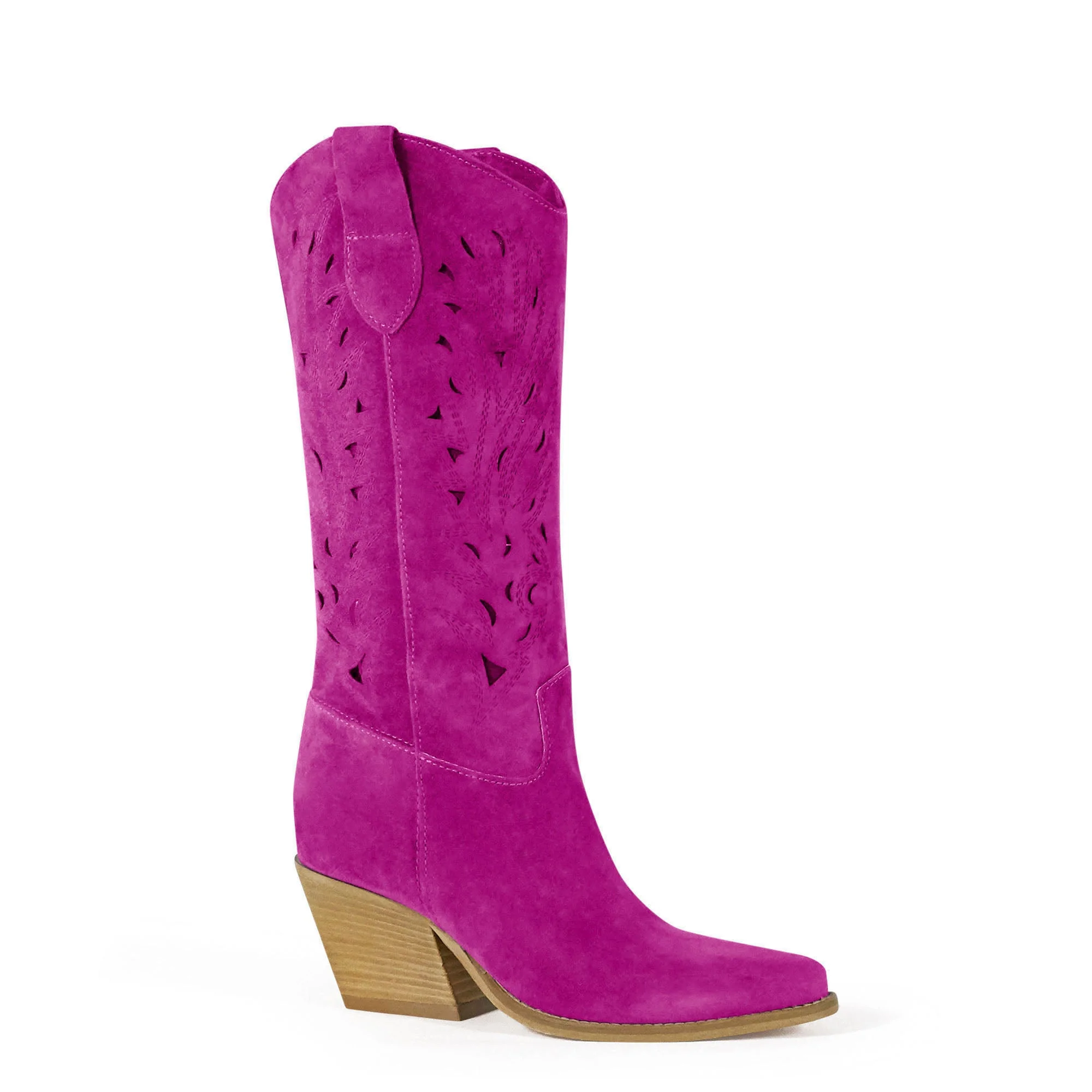 Stivali Texani in vera pelle scamosciata, realizzati a mano in Italia.