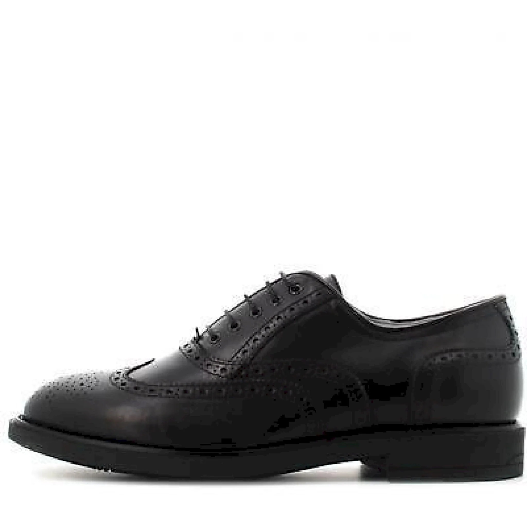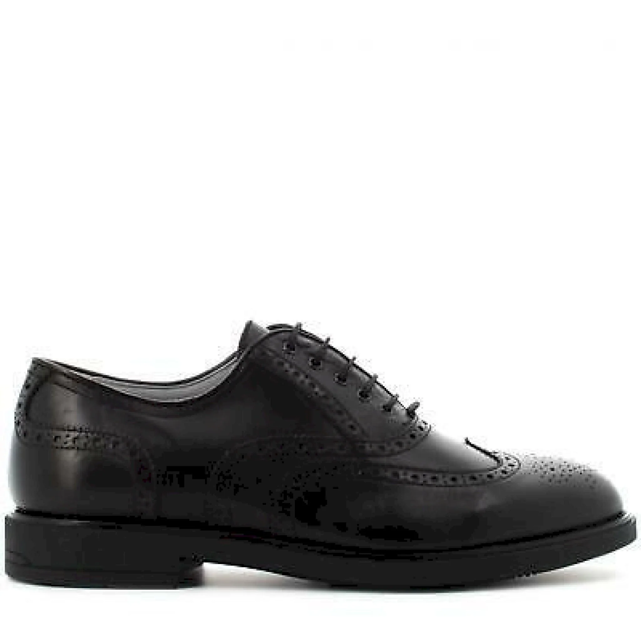 Stringata nera in pelle liscia effetto opaco a cinque fori. chiusura con laccetti. impunture a coda di rondine. soletta drygo! per una corretta areazione del piede. tacco basso di 2.5 cm. 100% made in italy.