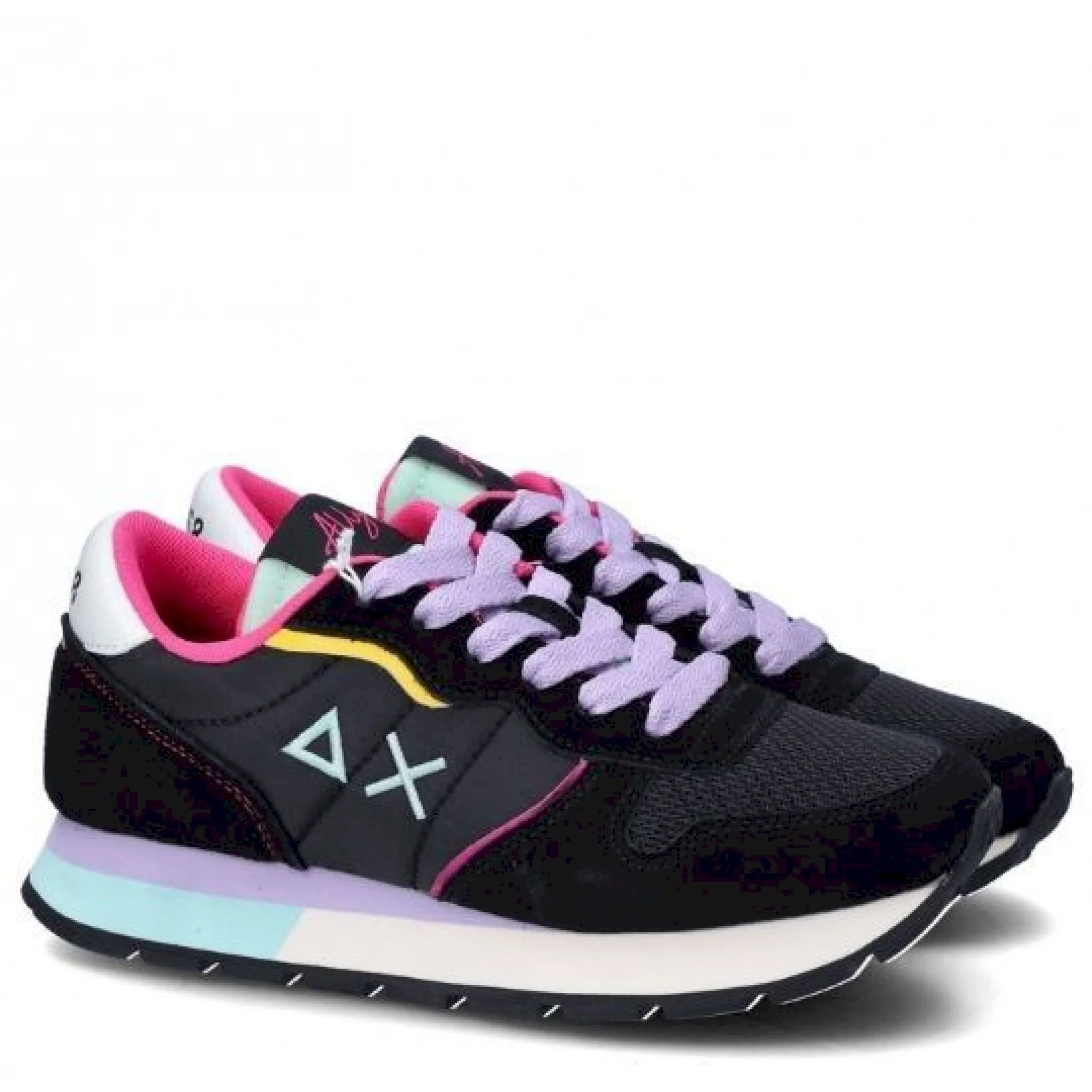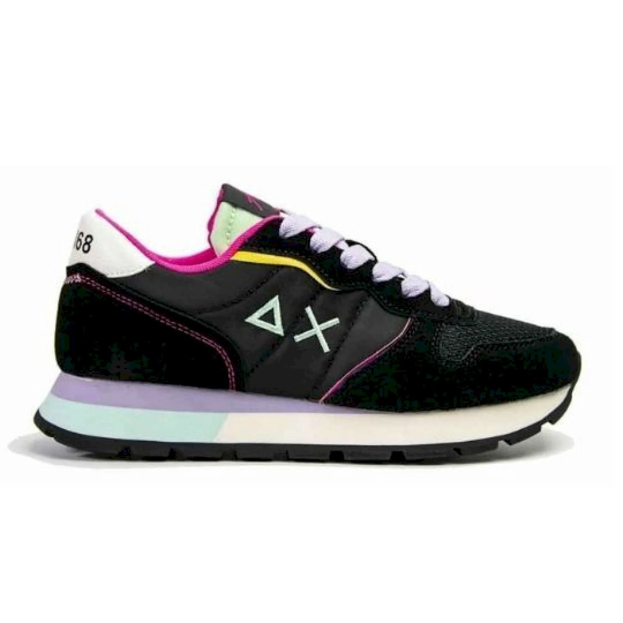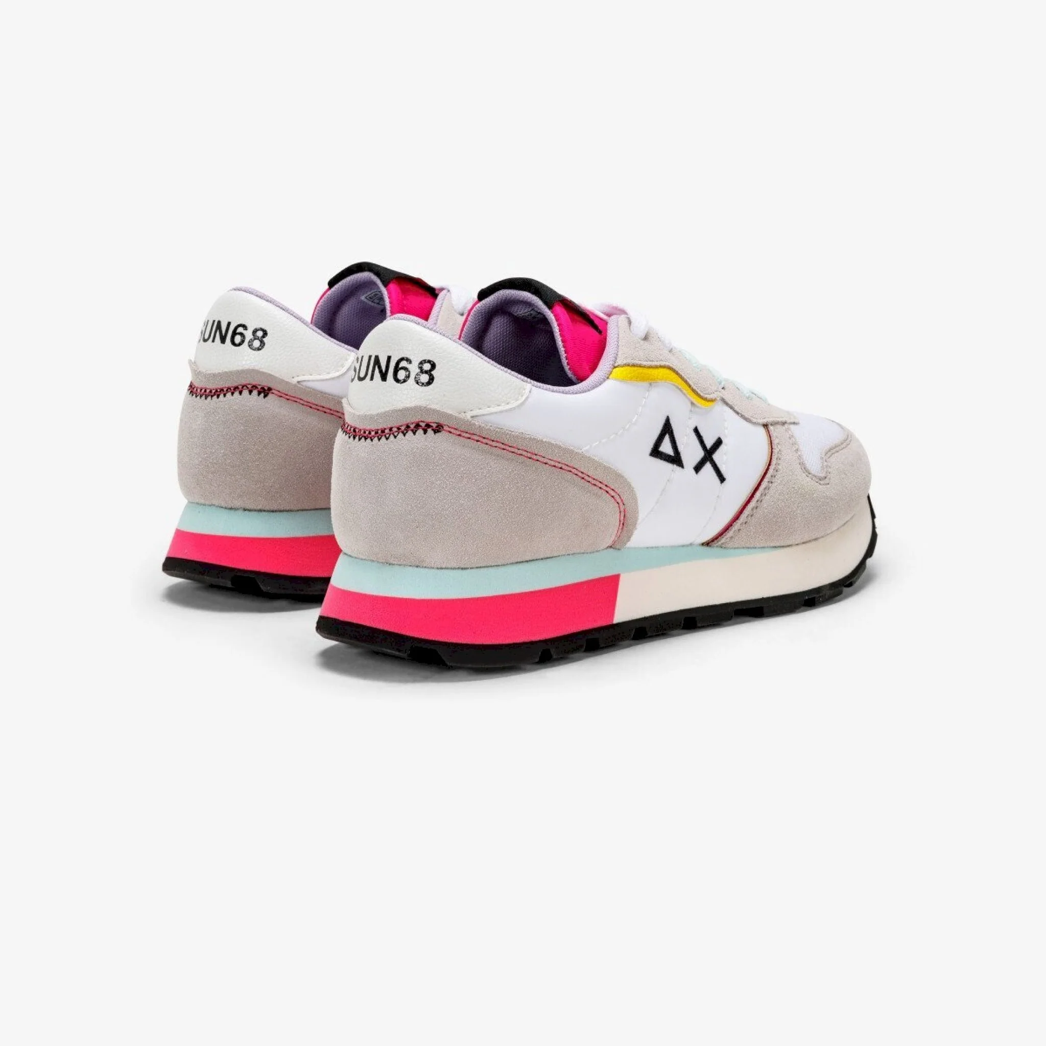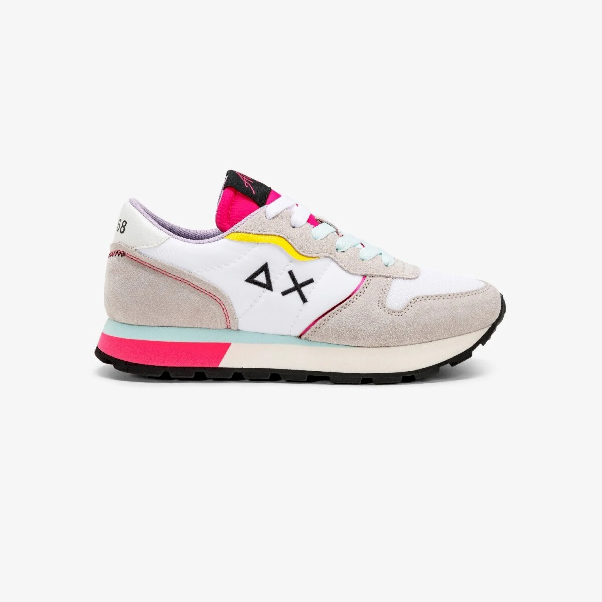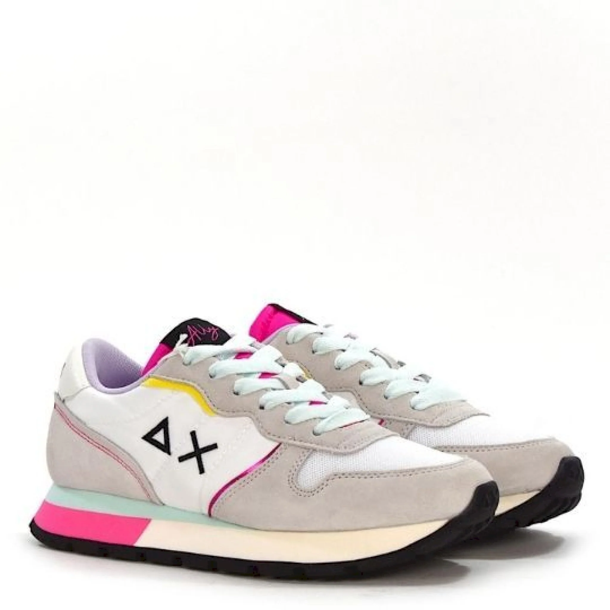 Sneakers realizzate in nylon e camoscio con lacci . logo cucito sul lato. inserto in eco pelle bianco con logo inciso sul retro. suola in gomma, altezza 3 cm.