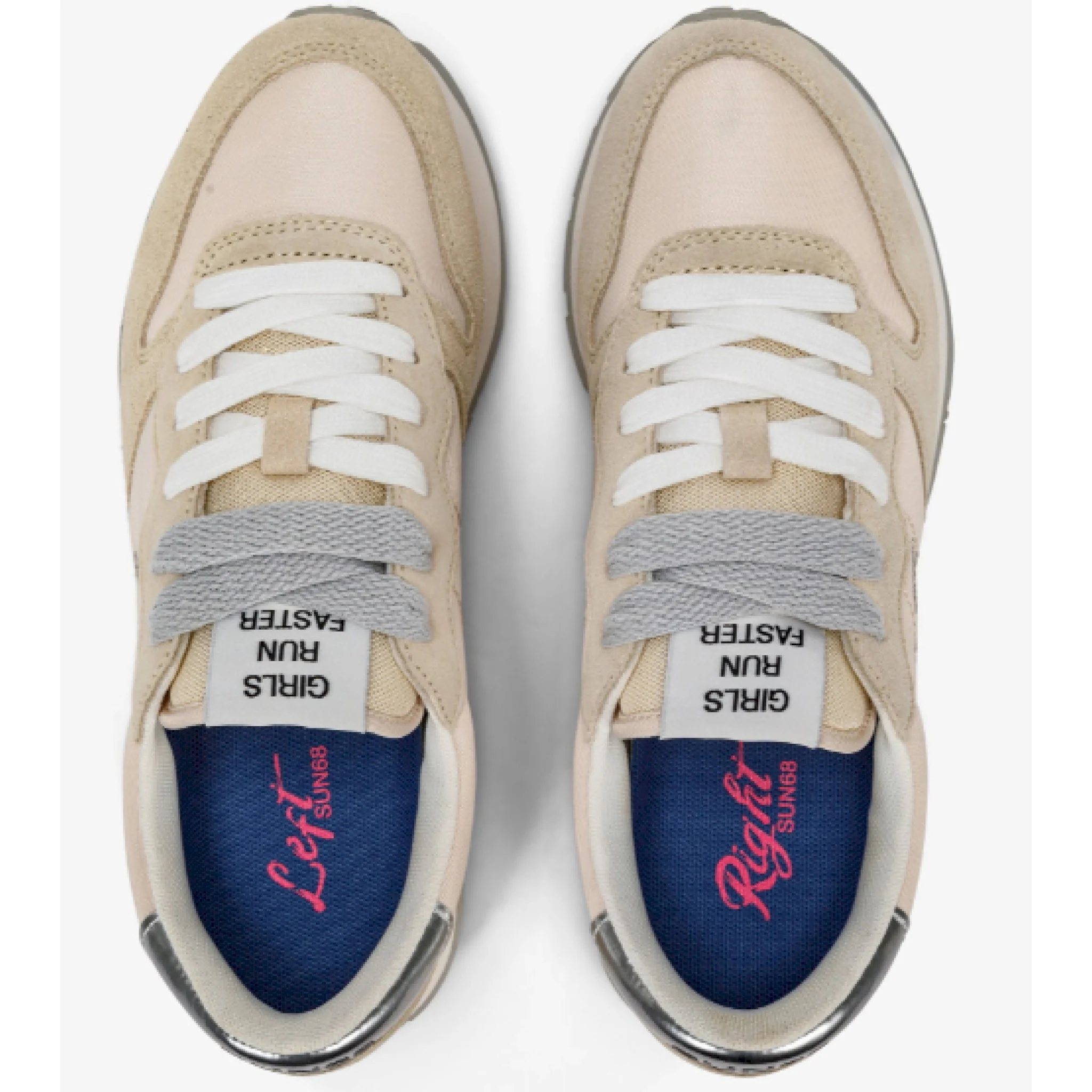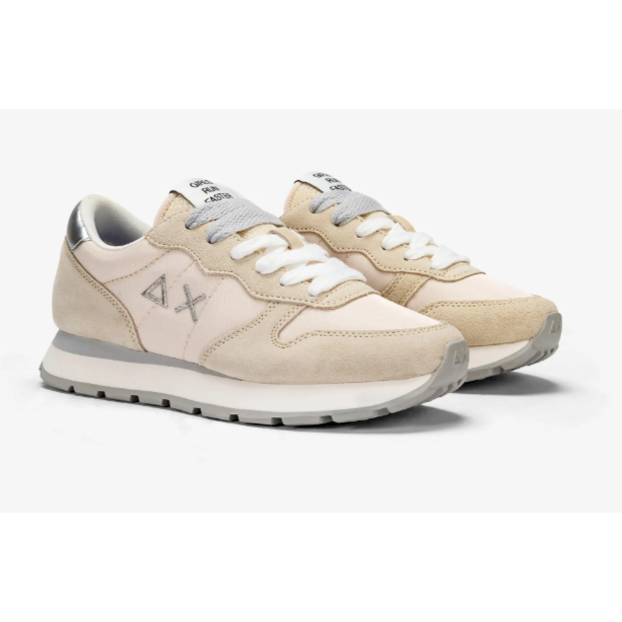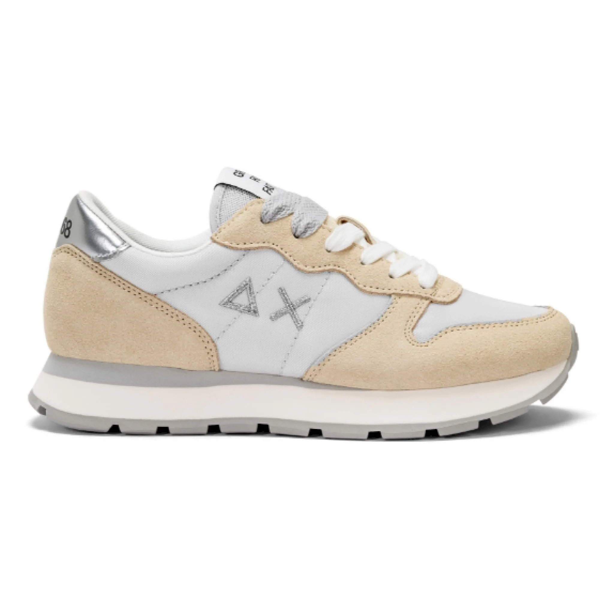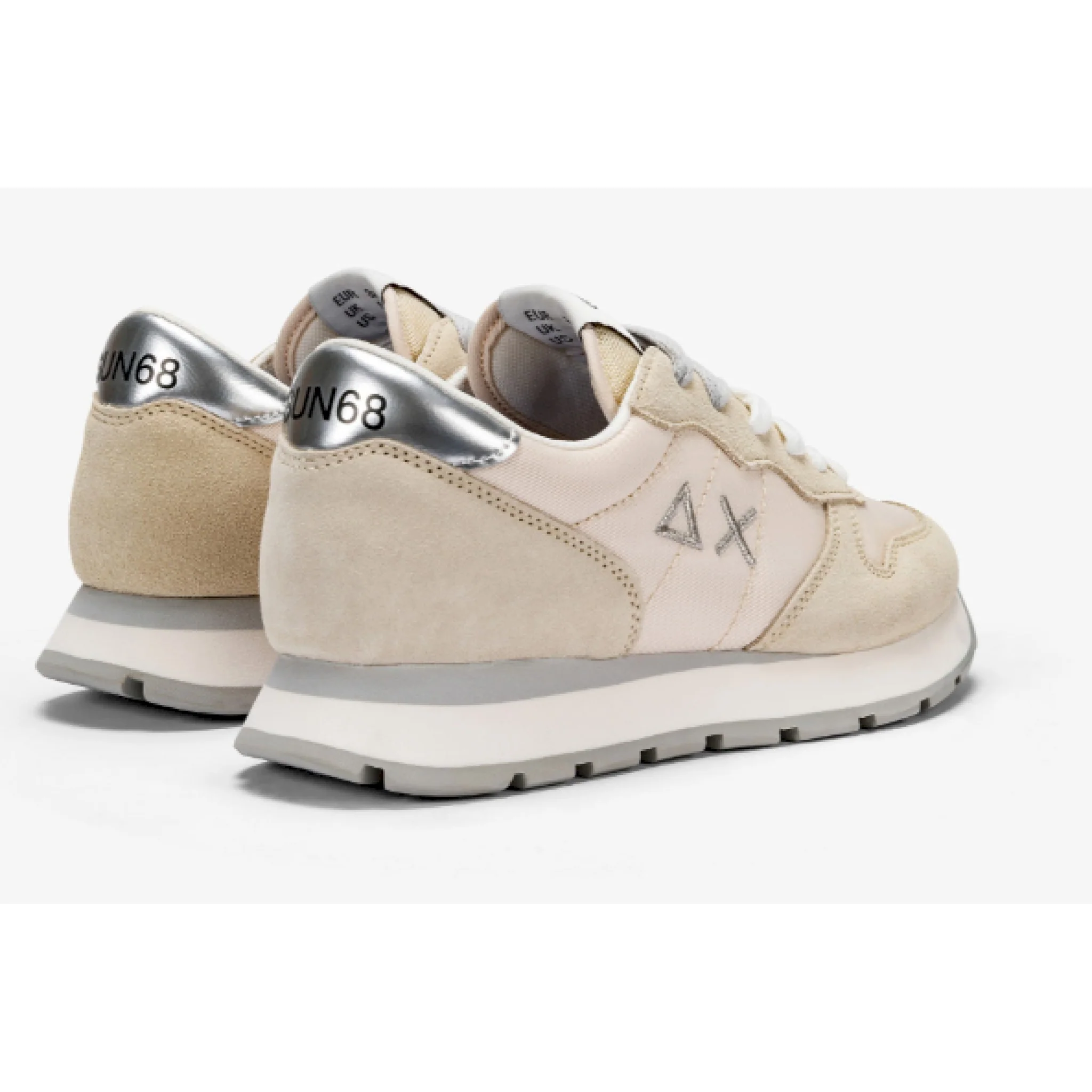 Sneakers sun 68 da donna modello ally gold z32202 01 fatte in pelle scamosciata e tessuto con i lacci. fondo in gomma. comode e casual.