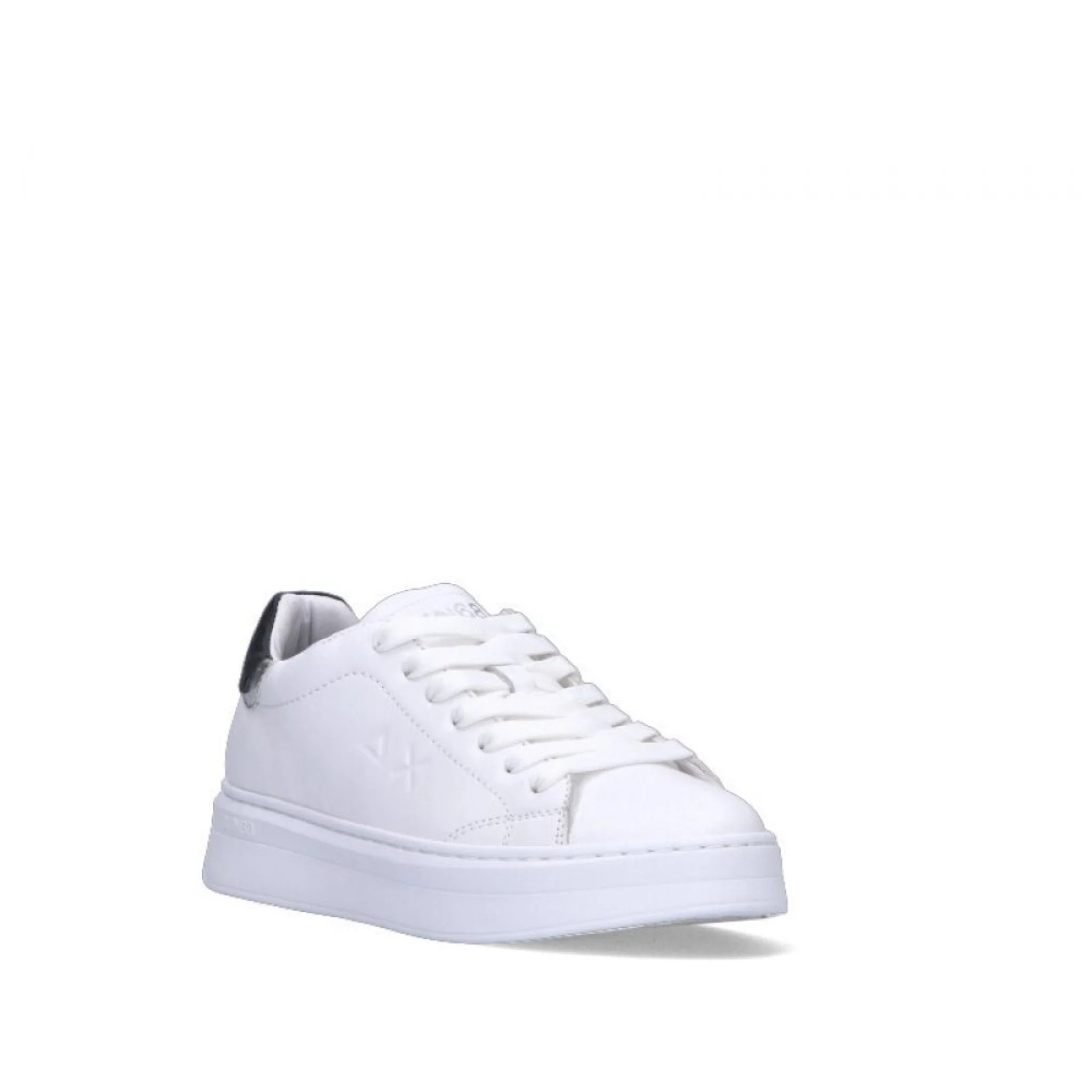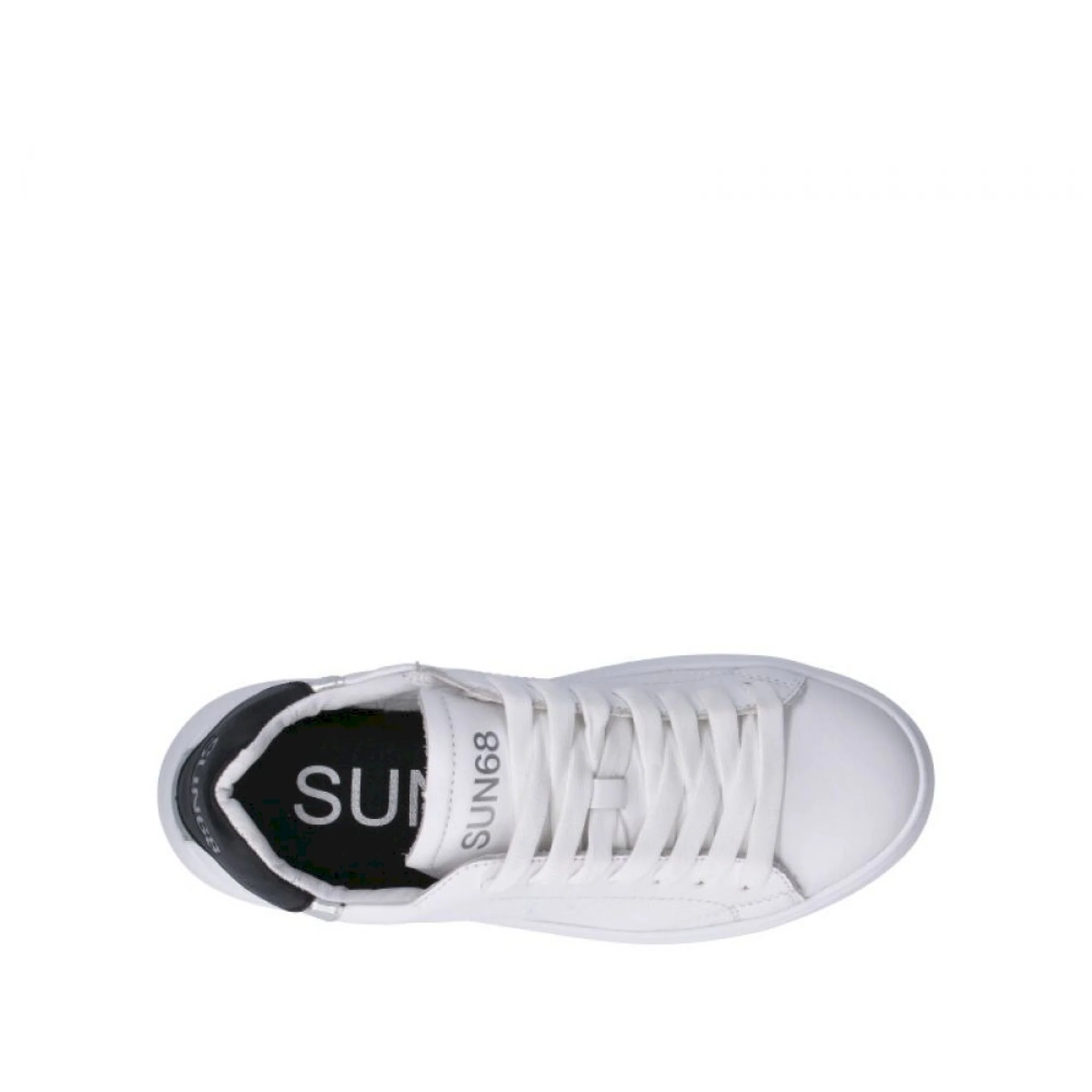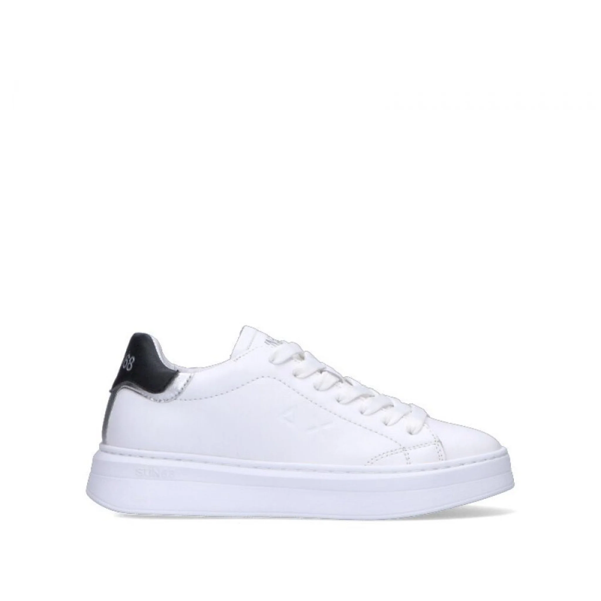 Sun68 sneaker donna bianca e blu in pelle naturale con plateau di 3 cm. una scarpa classica ma originale, per uno stile che non potrà non tentarti.