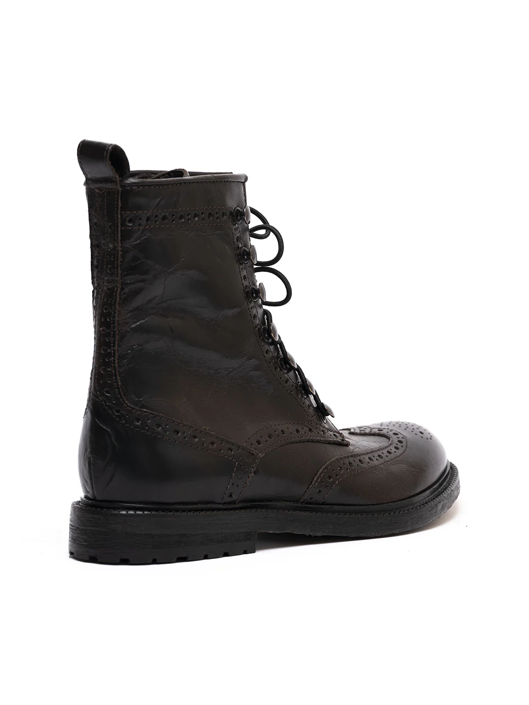 Tipo di lavorazione: ceratura e spazzolatura a mano, la suola viene lavata e fissata alla tomaia tramite la cucitura «Blake»