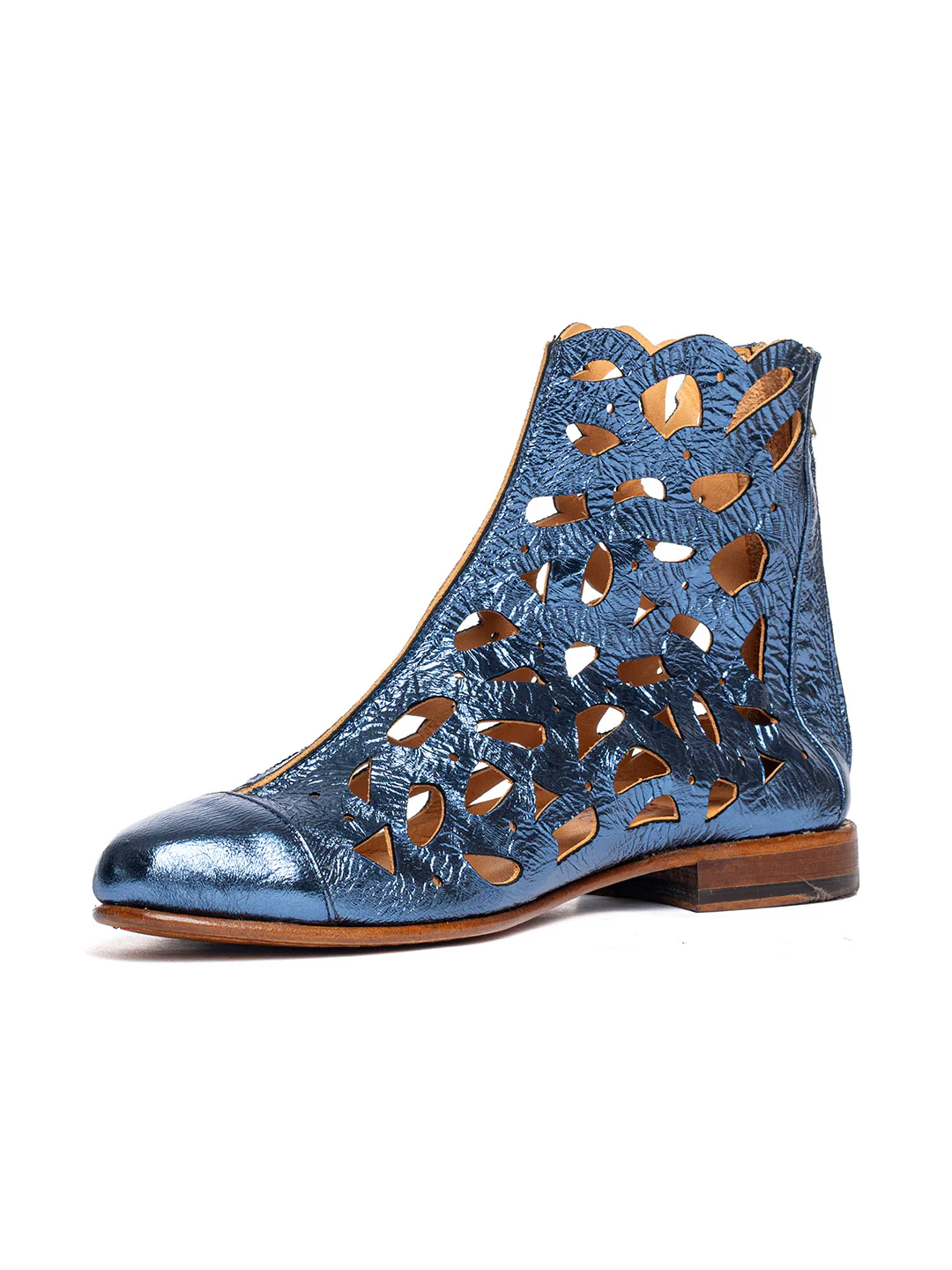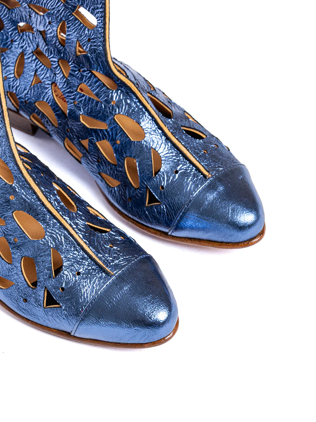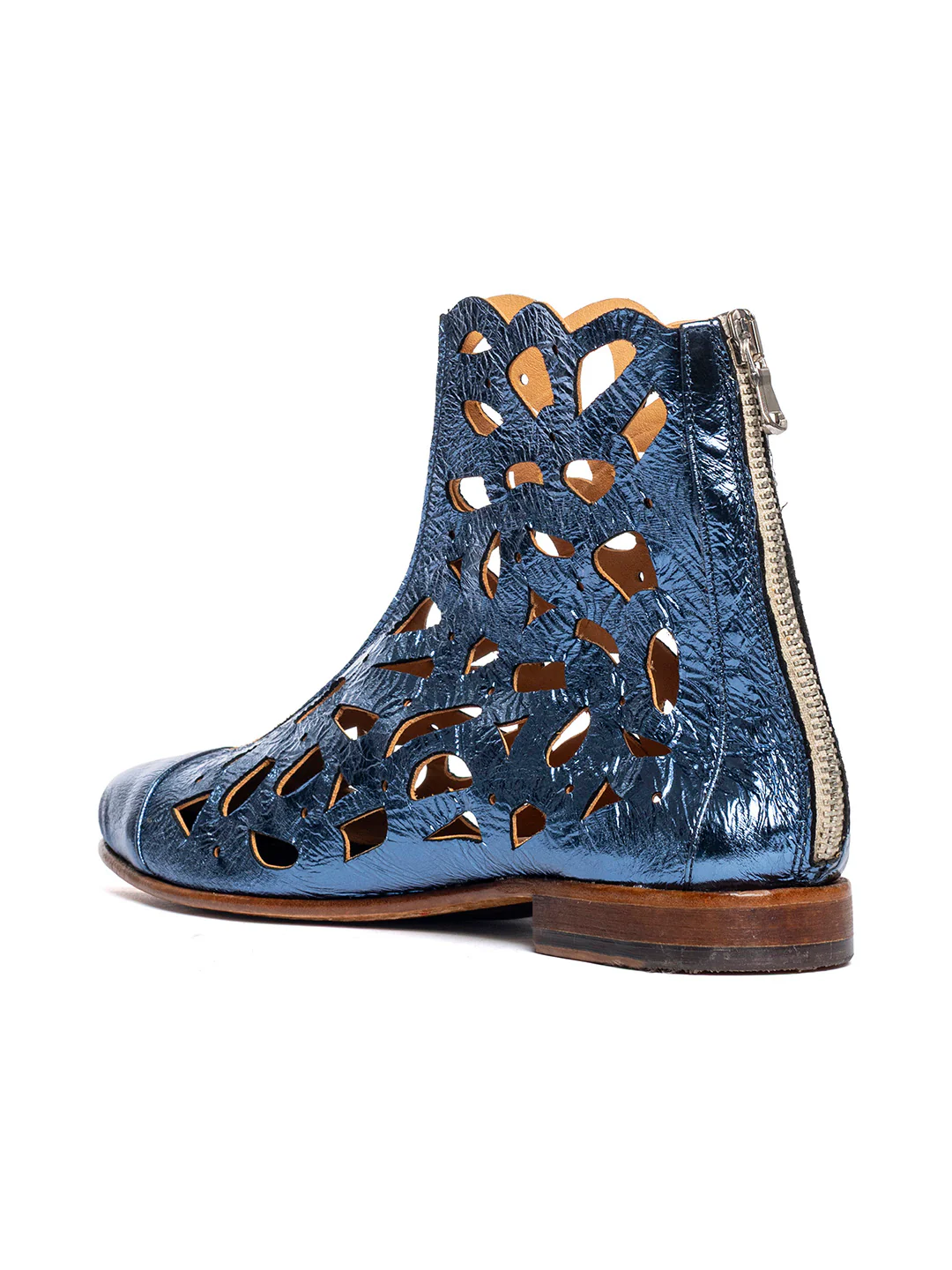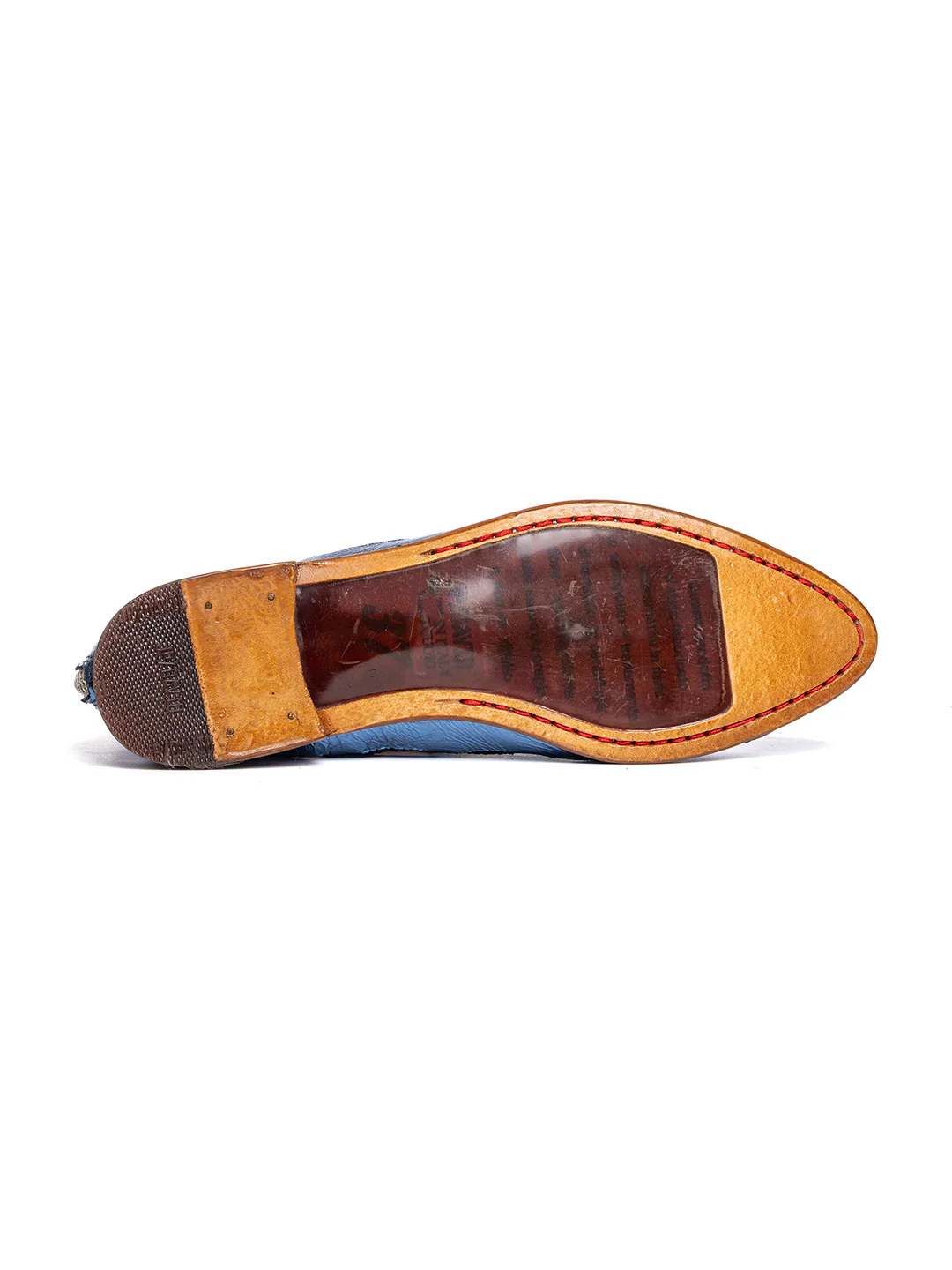Tipo di lavorazione: pellame laminato e slavato. La suola viene fissata alla tomaia tramite la cucitura «Blake»