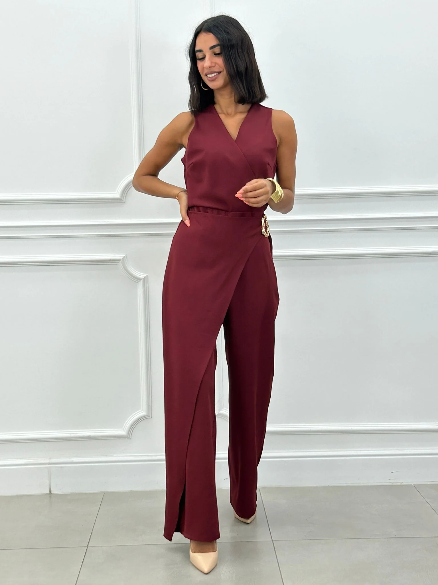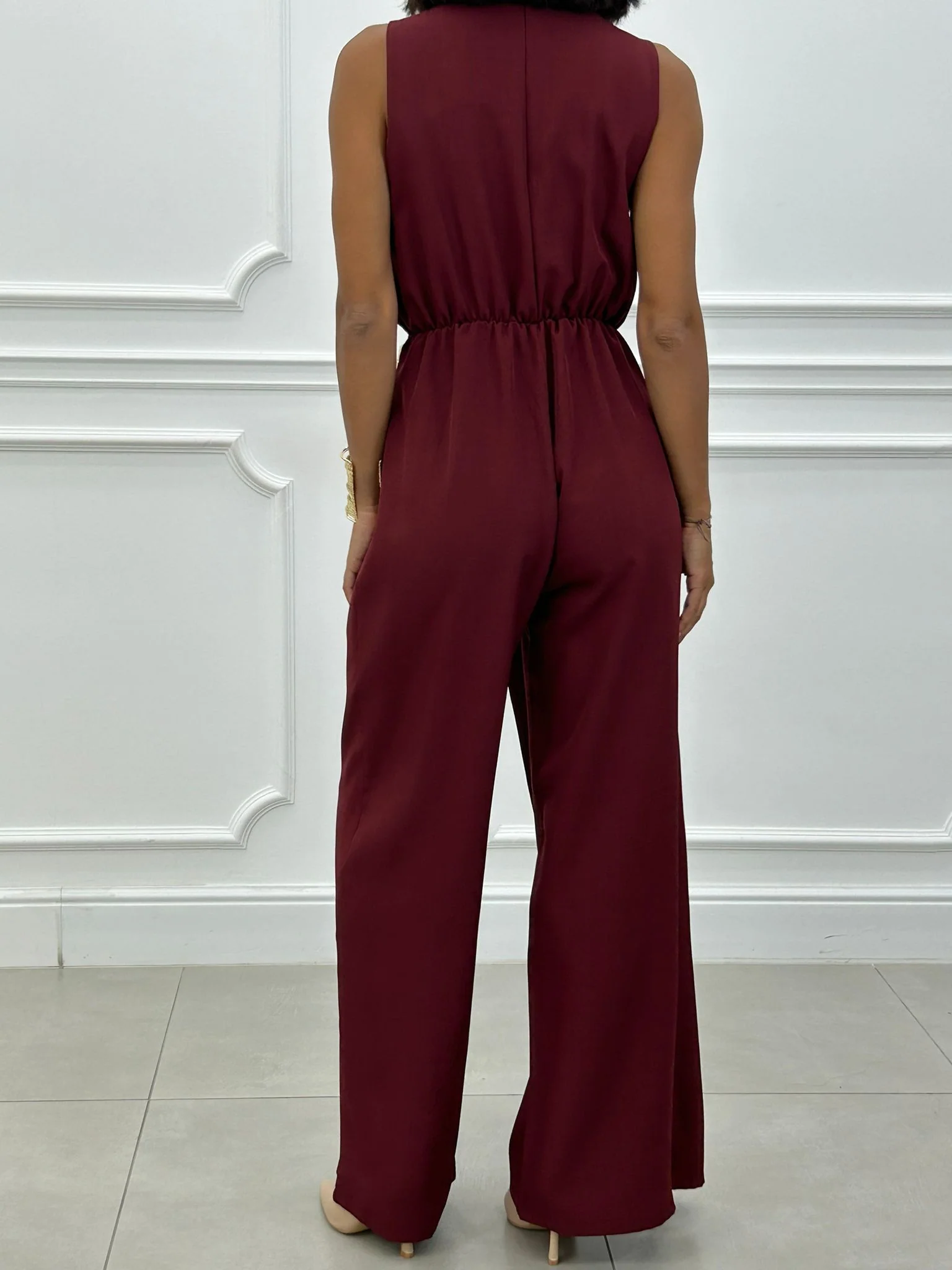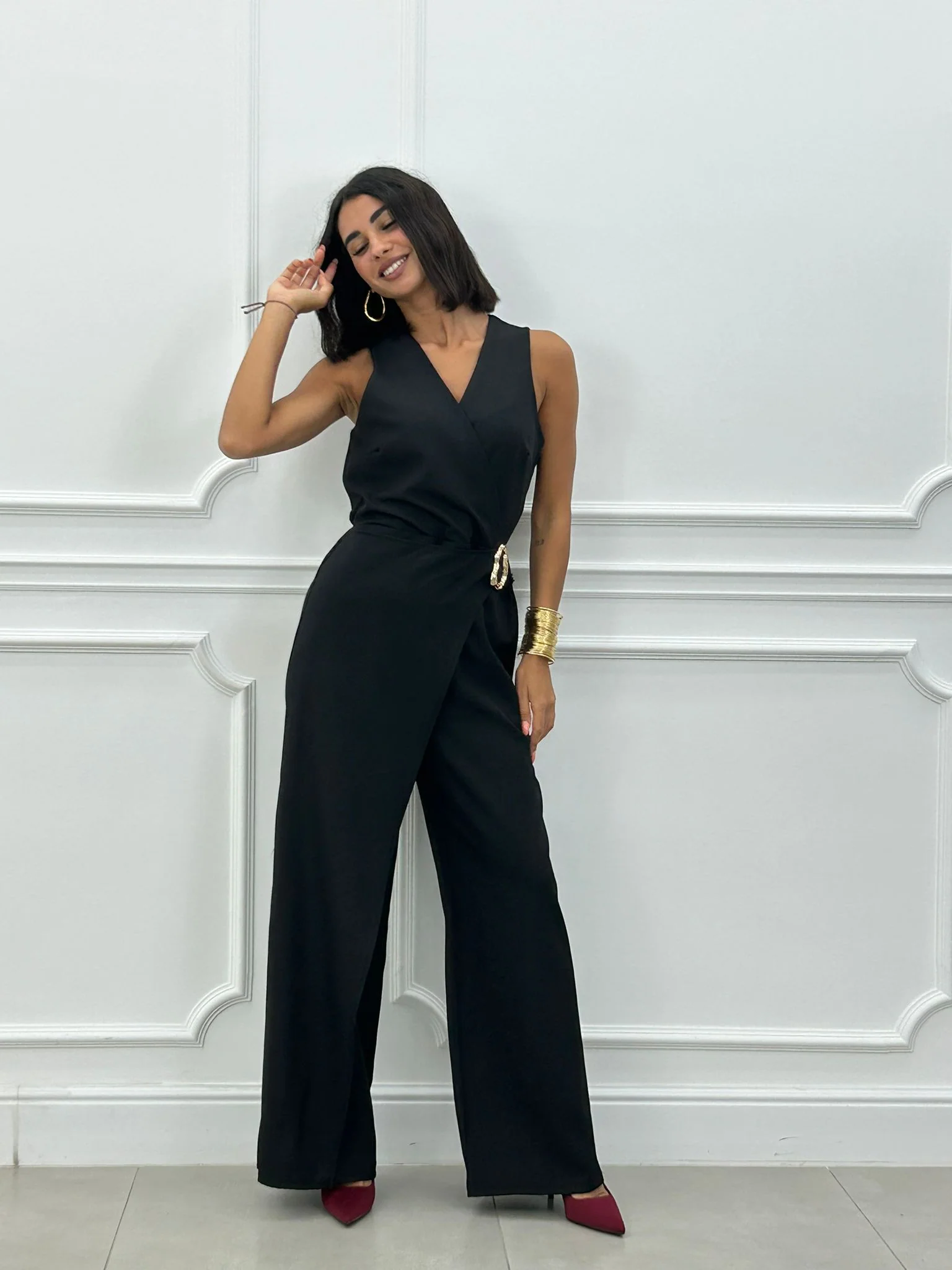Tuta intera palazzo con dettaglio oro in vita , elastico in vita e zip posteriore