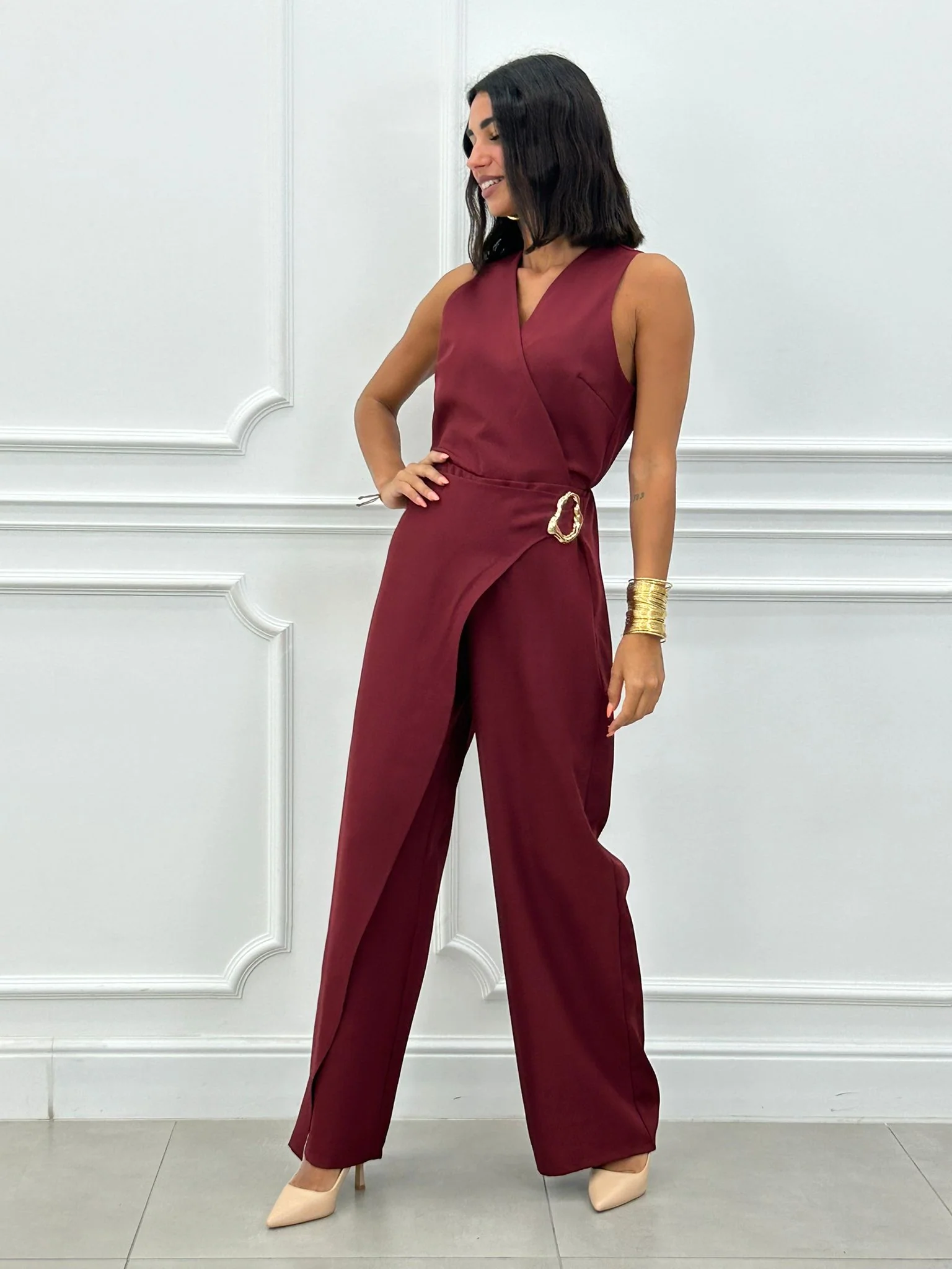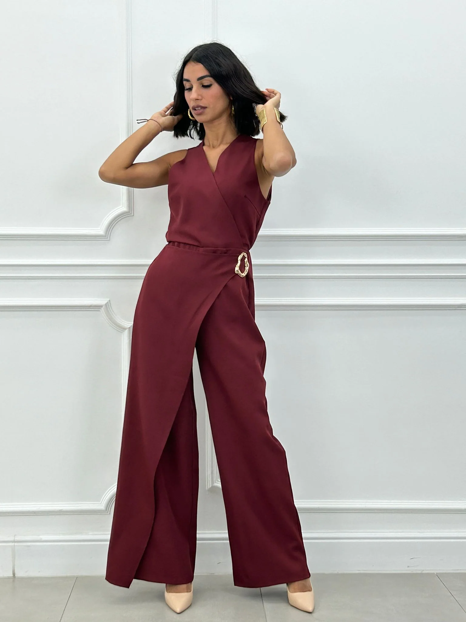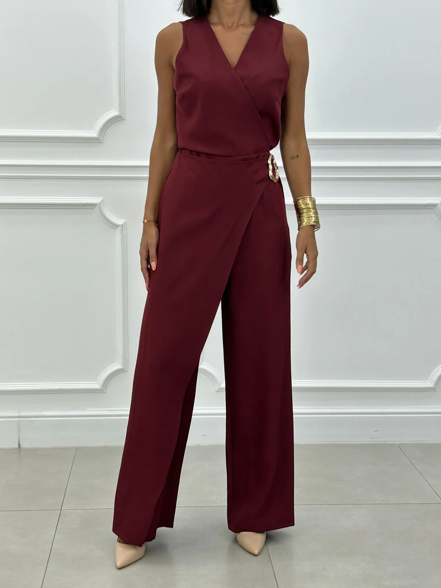 Tuta intera palazzo con dettaglio oro in vita , elastico in vita e zip posteriore
