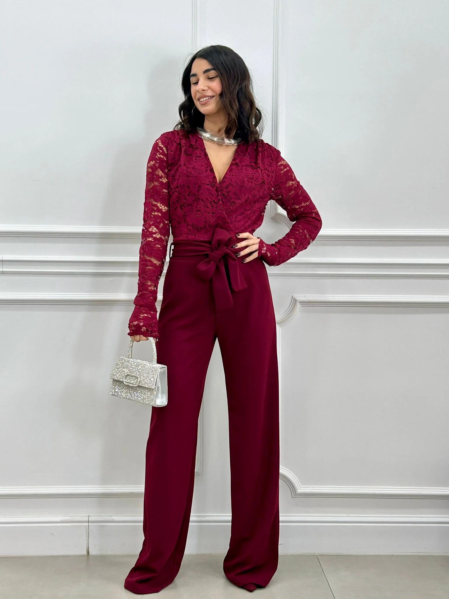 Tuta intera con pizzo e dettaglio fiocco in vita