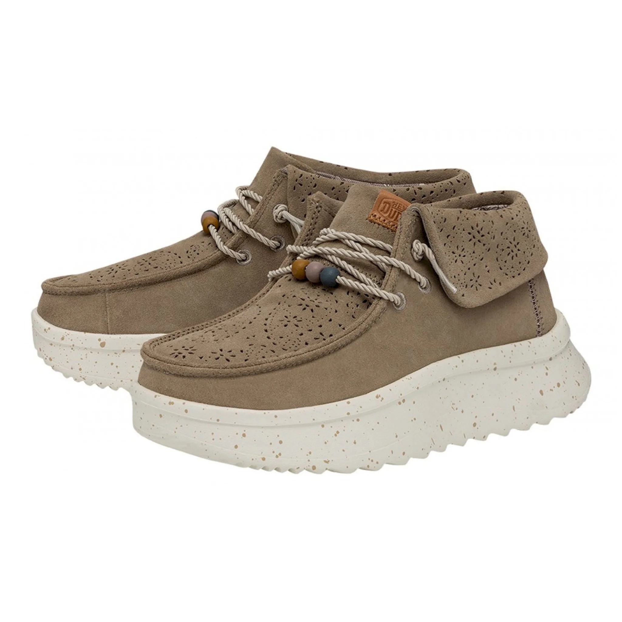 Goditi il piacere di avere ai piedi le wendy peak fold suede boot. tutto il comfort che puoi immagine: soletta in schiuma ammortizzante e l’altezza maggiorata di una leggerissima zeppa. la tomaia in camoscio ripiegabile conferisce un tocco chic al capo, mentre i lacci elasticizzati aumentano il comfort.